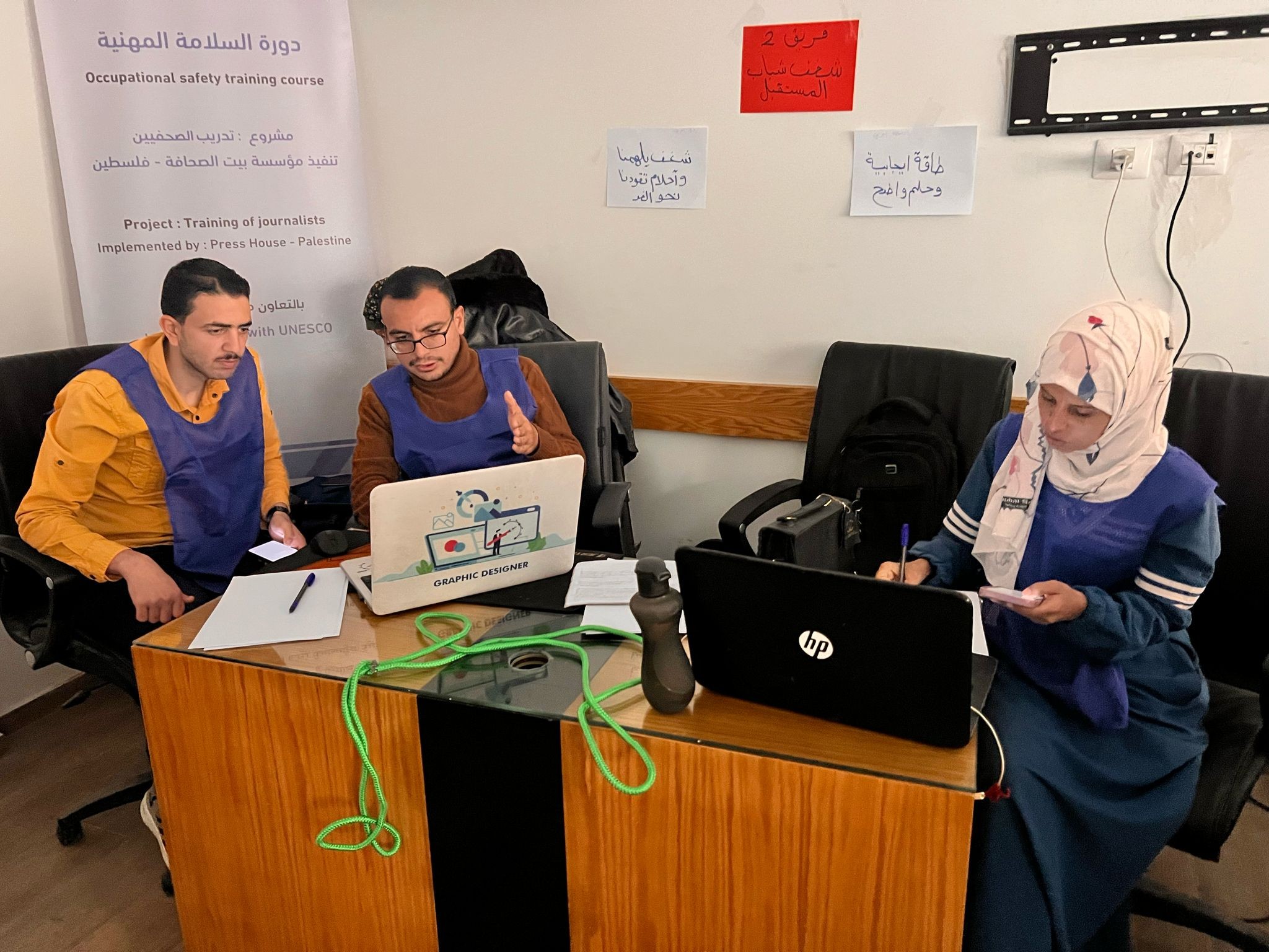 Held in Gaza City, the sessions were led by trainer Hamza Zaqout and focused on raising awareness about occupational hazards and safety protocols, as well as risk management strategies and personal protection techniques. The training also included practical modules on emergency response and first aid during crisis situations.